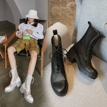 מגפי קרסול עור פאנק בסגנון אירופאי למותג מגפי מרטין שחורים אדומים בסתיו נעלי מגפי שלג בחורף נעלי עקב
