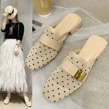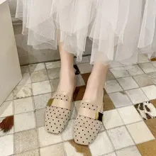 קיץ 2020 ראש מרובע חדש וחצי נעלי בית נשים לובשות רשת גל נקודה Baotou סנדלים ונעלי עקב Z932