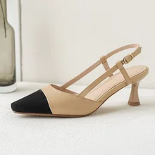 נעלי טלאי נשים עקב גבוה מסיבת קיץ ליידי משאבות נעלי נשים עור אמיתי יוקרה אופנה נעליים מעורבות בצבע אישה
