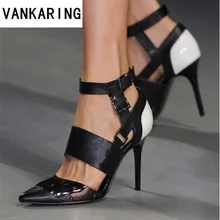 סנדלי נשים בוהן מחודד סקסי נעלי עקב עקב גבוה מעורב צבעוני סנדלי גלדיאטור רצועת קרסול נשים מסיבת חתונה