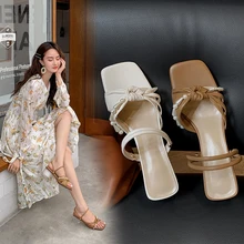 מכירת חמה נעלי קיץ חדשות נעלי סנדלים עם עקבים שטוחים סקסיים נעלי בית בוהן פתוחה משרד ליידי שמלת מסיבת אישה