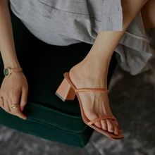 קיץ 2020 חדש בסגנון רטרו מינימליסטי עור סנדלי עקב עבים ונעלי בית פשוטות בצורת נחש Z933