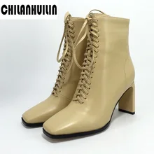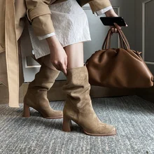 מגפי קרסול מעצבי עור מיקרופייבר לנשים עקבים גבוהים נשים בוהן מרובע נשים נעליים סקסיות מגפיים עירום מגפיים גדולים