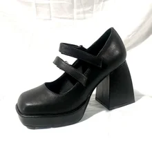 מעצבי מותג נשים משאבות עקבים גבוהים חדשים של עור אמיתי מרובע נעליים אדומות שחור לבן, מרי ג'אנס שמלות נעלי מסיבה בגודל 43