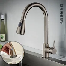 ברז מטבח נשלף מוברש כיור שחור יחיד חור חם וקר ברז סיבובי רב פונקציה