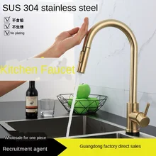 304 ברז משיכה נירוסטה חישה ברז משיכה למטבח מוברש ברז שחור עם מגע זהב ברז