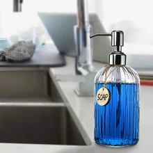 מתקן לסבון זכוכית עם משאבת נירוסטה הוכחה חלודה, מתקן לסבון נוזלי למילוי חוזר לחדר אמבטיה, סבון מטבח
