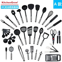 כלי מטבח ניילון עם ידית צינור 40 חלקים ידית ניילון ערכת כלי מטבח נירוסטה גאדג'טים למטבח