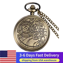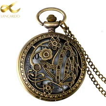 נחושת עתיקה נחושת Steampunk ברונזה חלול הילוך קוורץ שעון כיס שרשרת תליון שעון שעון גברים נשים עם אביזרים