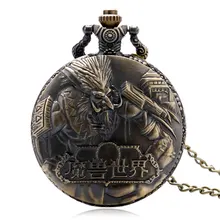 Hot Game World of Warcraft Theme טרול עיצוב טרול ברונזה 3D קייס פוב שעון כיס עם שרשרת תליון מתנה לנערים