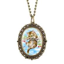 קיטי קטן וחמוד תליון קוורץ שעון כיס שרשרת תליוני תכשיטים לשרשרת חתול שרשרת קולר מתנות לילדי תינוקות ילדים