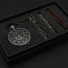 חלול חצי אוטומטי מכאני שעון כיס סטים לגברים נשים שרשרת תליון שעון יום הולדת מתנות P825WBWB