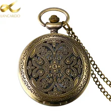 לוקומוטורה חלולה וינטג 'עם פרח עיצוב קוורץ פוב שעון כיס עם שרשרת תליון שרשרת לנשים גברים
