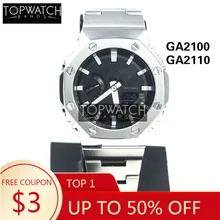 GA2100 כסף סט שעון שעון רצועת השעון לוח מתכת נירוסטה שעון רצועת שעון רצועת שעון צמיד GA2110 GA-2100