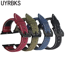 רצועת השעון עור אמיתי שחור עבור Apple Watch 5 4 Band Band סדרת 3/2/1 צמיד ספורט 42 מ
