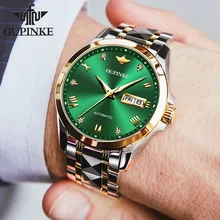 OUPINKE גברים אוטומטיים מכאניים שעונים למעלה מותג יוקרה ספיר זכוכית פלדת טונגסטן תאריך שעון יד עמיד למים זוהרים