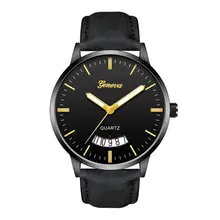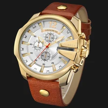 שעון יוקרה לגברים שעוני יד ספורט שעון יד סגסוגת רצועת עור שעון קוורץ שעון יד שעון לוח שנה Montre Homme