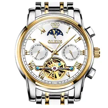 OLEVS גברים שעונים אוטומטיים שעונים מכאניים סטיאן ללא מותג למעלה שמלת ירח יוקרה שלב מתנות שעוני יד לטורבילון לגברים