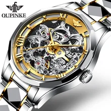 OUPINKE שלד גברים שעונים מכניים אוטומטיים למעלה מותג עליון ספיר זכוכית יוקרה עמיד למים מפלדת טונגסטן זוהר
