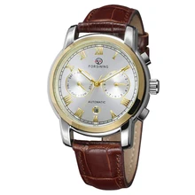 שעונים מכניים אוטומטיים מלאים לגברים עור עגול נירוסטה אטומים למים