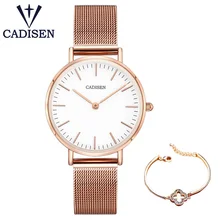 שעון יוקרתי קל CADISEN עבור שעון קוורץ נירוסטה דק במיוחד לנשים לנשים 3ATM עמיד למים פשוט