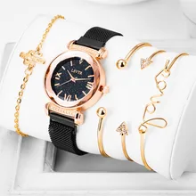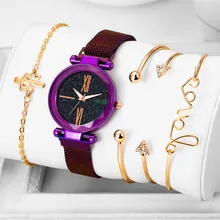 שעונים מכירת סט 5 יחידות גבירותיי צמיד שעוני יד חדשות שעוני יד כוכב שמיים אלגנטיים חמים שעונים אופנה קוורץ שעון Montre Femme