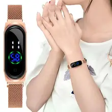 שעון יד לנשים מסך מגע LED שעונים לנשים שעון רשת מגנטי שעוני יד דיגיטליות Relogio Feminino