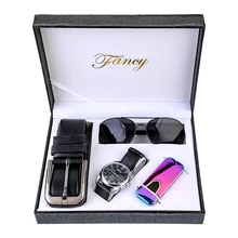 סט מתנות עסקיות לגברים שעון יד להקת עור גברים גברים משקפי שמש חגורת מצית גברים יום הולדת הפתעה קופסא מתנה ליום האב