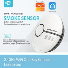 גלאי עשן אלחוטי Tuya Smart Life Wifi חיישן גילוי אש עצמאי חיישן עשן ביטחון נגד סיגריות google alexa