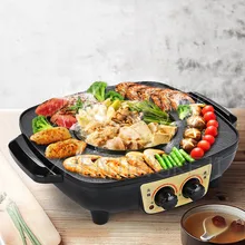 ברביקיו חשמלי רב תכליתי אפיית שאבו סיר אחד גריל ללא עישון גריל ביתי עוצמה גבוהה 1400W סיר חם ללא מקורה סיר חם מקורה