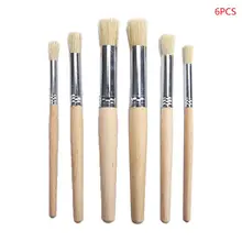 6 יח '\ סט ציור צבעי מים מברשת סטנסיל בגודל שונה ידית עץ לילדים אספקת אמנות סטודנטים