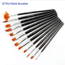 12 צבעי מים מברשת גואש יח '\ סט מברשת צבע עגולה ראש מחודד ניילון שיער אקריליק מברשת ציוד לבית ספר מקצועי