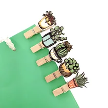 10 יח '\ חבילה קקטוס בעציץ חמוד מיני נייר קליפים מעץ לסימניות עבור תזכיר הודעת אלבום קליפ עם מתנות למכשירי חבל
