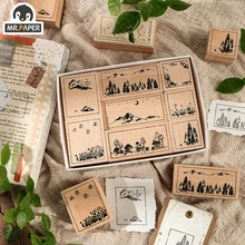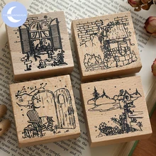 מר נייר 4 מעצב אגדות נוף מצוירות סדרות חותמות גומי מעץ מרובעות לחותמות דקו מלאכת דקו