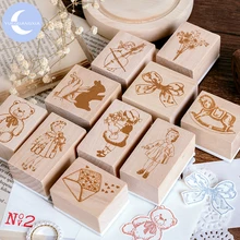 YueGuangXia 4 עיצובים זמן שלווה כפרי מראות וינטג 'כיכר חותמות גומי מעץ לרביטוט דקו מלאכות עץ מעץ