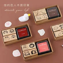 TUNACOCO חותמת חותמת להגדיר חותמת סיגנט עם כרית דיו בול עץ חיתוך עץ בעלי חיים Qt1710133
