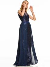 פאייטים שמלות ערב כחולות נשים תחרה אלגנטית סקופ צוואר ללא שרוולים מסיבת קו שמלות ארוכות סקסיות שמלת פורמליות Robe De Soiree
