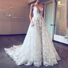 שמלות נשף 2020 תחרה לבנה ארוכה ללא שרוולים ללא שרוולים ללא שרוולים עם צווארון V- צוואר מסיבת סיום קיץ שמלת נשף נשים