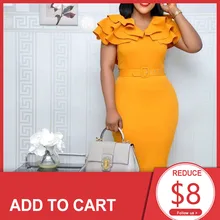 מסיבת טלאים אלגנטית Dres נשים אפריקאיות קפלים שרוול Bodycon Midi שמלת משרד מקסי Vestidos בתוספת גודל צהוב כחול כחול