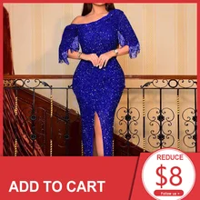 שמלת נשף אלגנטית כחול רויאל בת ים פיצול קדמי 3/4 שרוולים באורך קרסול מסיבת חתונת אפריקאיות נצנצים שמלות נשף