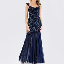 שמלת מסיבת Dressv נשים ערב בת ים ארוכה ללא שרוולים באורך רצפת חרוזים תחרת רשת נצנצים שמלות סלבריטאיות אלגנטיות