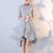 שמלת מסיבת Dressv נשים סקסיות 2020 שרוול חצי שרוול א-סימטרי ראה רשת תחרה פרחונית שמלות ערב מקורה ערב מסיבת אישה