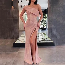 שמלות בת ים אלגנטיות צווארון אלכסוני כתף אחת באורך רצפה סקסי מפלגת מועדון מפלגת שמלות שמלות ערב רשמיות