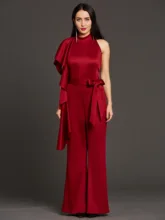 Dressv קיץ א-סימטרי סקסי ראפלס סרבל ג'ימס Romper גבירותיי מסיבת לילה תחרה בתוספת גודל סרבל אדום רחב רגל רחבה לנשים
