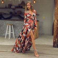 2020 אופנה חדשה לנשים שמלת הדפס שרוול ארוך V צוואר שמלת מסיבת ערב רשמית זולה באיכות גבוהה