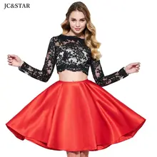 שמלות קוקטייל עם שרוולים ארוכים עם שרוולים ארוכים 2020 ALIN 2 חלקים חדשים vestido coctel mujer אלגנטי קוקטייל שחור אדום קוקטייל