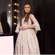 גאלה יורקן שמפניה תחרה ערבית תכשיט צוואר לפרוע מזרח תיכון באורך קרסול שמלת ערב לנשף בתוספת שמלות כלה בגודל בהיר