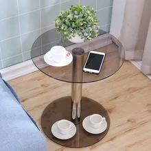 ריהוט שולחן קפה עגול Basse זכוכית מחוסמת מרכז שולחן שולחן מיטה קטנה בסלון בחדר שינה עם רגלי נירוסטה