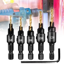 מקדחה מצופה מעץ טיטניום סט מקדח סט 1/4 שינוי מהיר שקע בורג הקס נגרות מקדד Chamfer טחנה