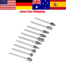 10 יחידות מקדחים קרביד טונגסטן כרסום חותך כלי סיבובי Burr מקדח סט מקדחים חשמליים לטחינת עיבוד מתכת